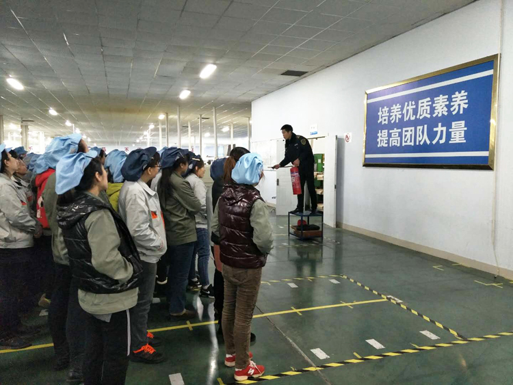 2017年12月14日制造中心邀請德州市社安消防中心老師對全公司職工進行消防安全知識培訓及實地演習。